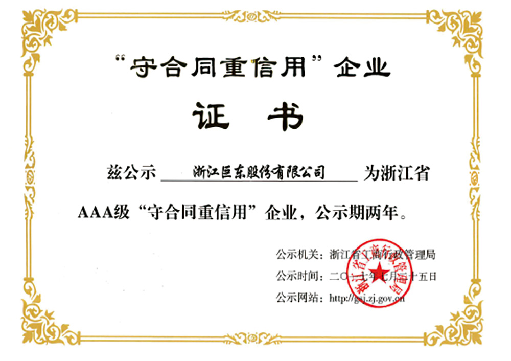 2017年浙江省AAA級(jí)守契約重信用企業(yè)